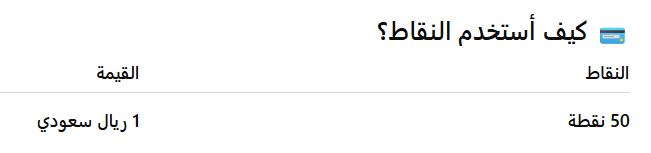 مثال توضيحي: 500 نقطة = خصم 10 ريال سعودي.